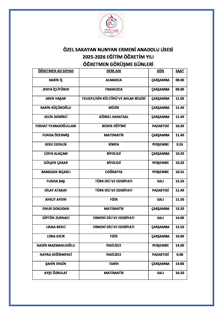 - Juptun Zurnacı – Ermeni Dili ve Edebiyatı Öğretmeni