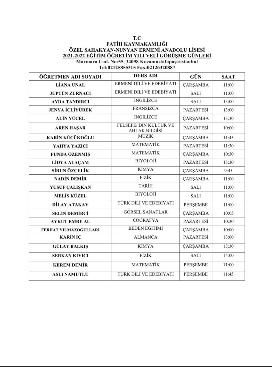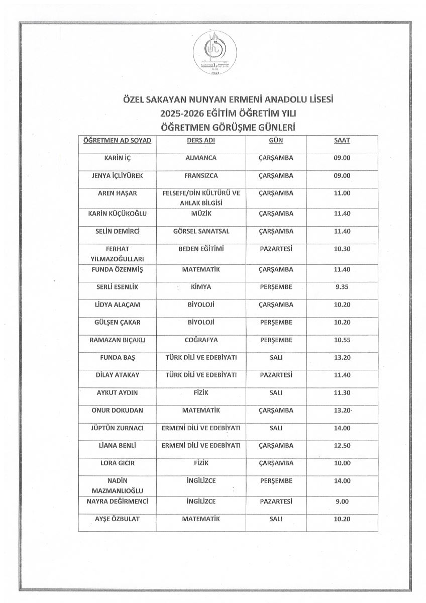 Özel Sahakyan Nunyan Ermeni Anadolu Lisesi 2019 YKS Sonuçları
